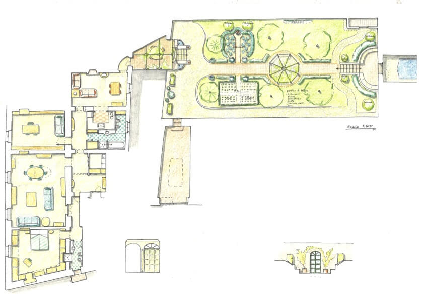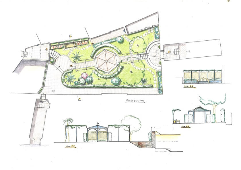 Progettazione e restauro di un piccolo giardino all’ interno di un isolato del centro storico di Perugia, di pertinenza di un appartamento. Il piccolo giardino era da diversi decenni abbandonato, con piantumazioni disordinate ed incongrue. Si è proceduto al restauro delle essenze esistenti, all’eliminazione di quelle fuori contesto ed all’inserimento di nuove essenze. Si è provveduto altresì all’inserimento di elementi “Architettonici” (pergole, chiostri, ecc.) ordinatori dello spazio ed al rifacimento delle pavimentazioni.